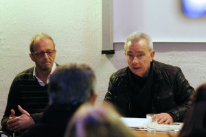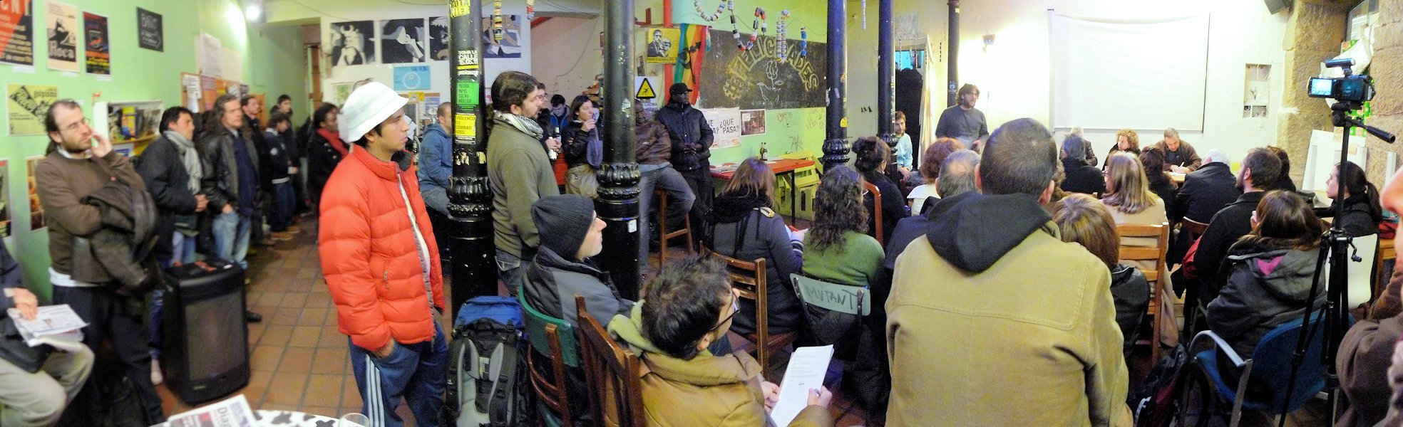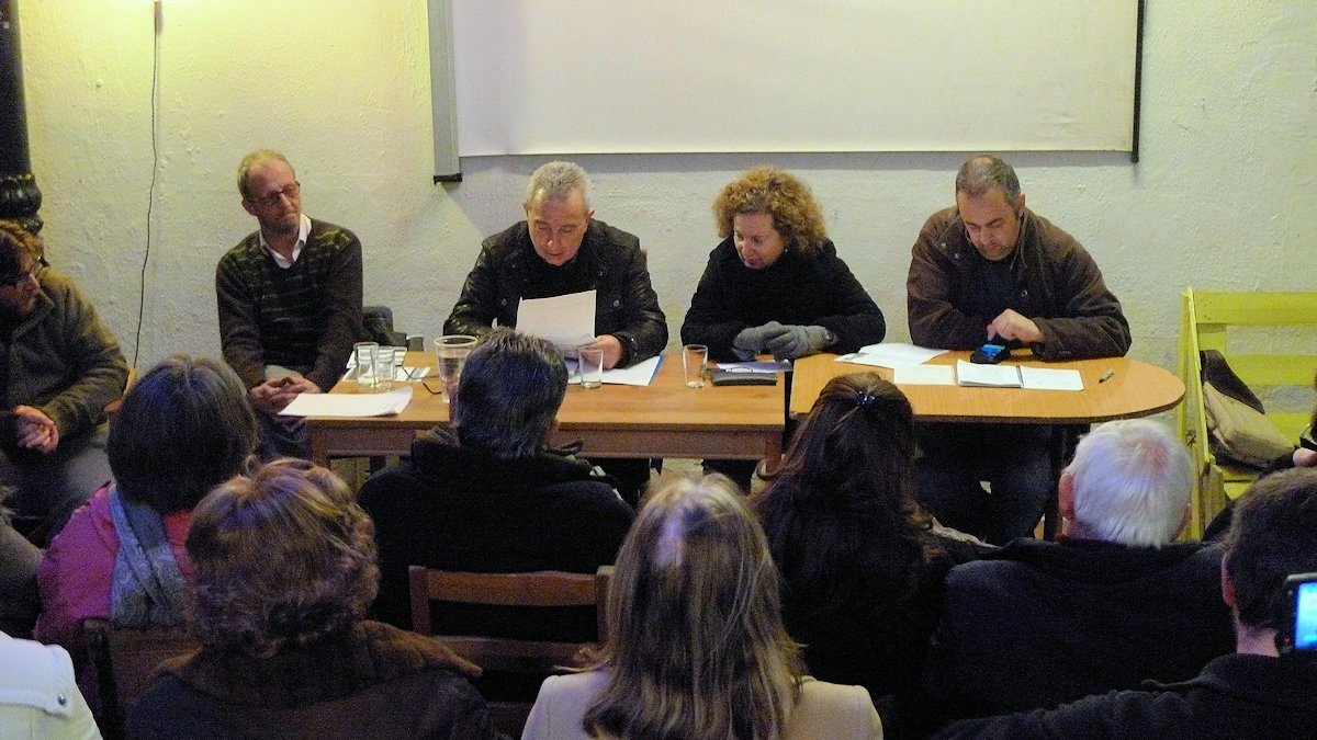Ante un público muy diverso de unas cincuenta personas se habló de las condiciones en que se realizó la Transición, condiciones de pacto, convulsión social y represión, así como de las labores que desde hace unos años se llevan por el establecimiento de la Memoria Histórica y el reconocimiento de los luchadores anti-franquistas y contra la impunidad de los crímenes del franquismo, labor en la que está inmersa nuestra Asociación.