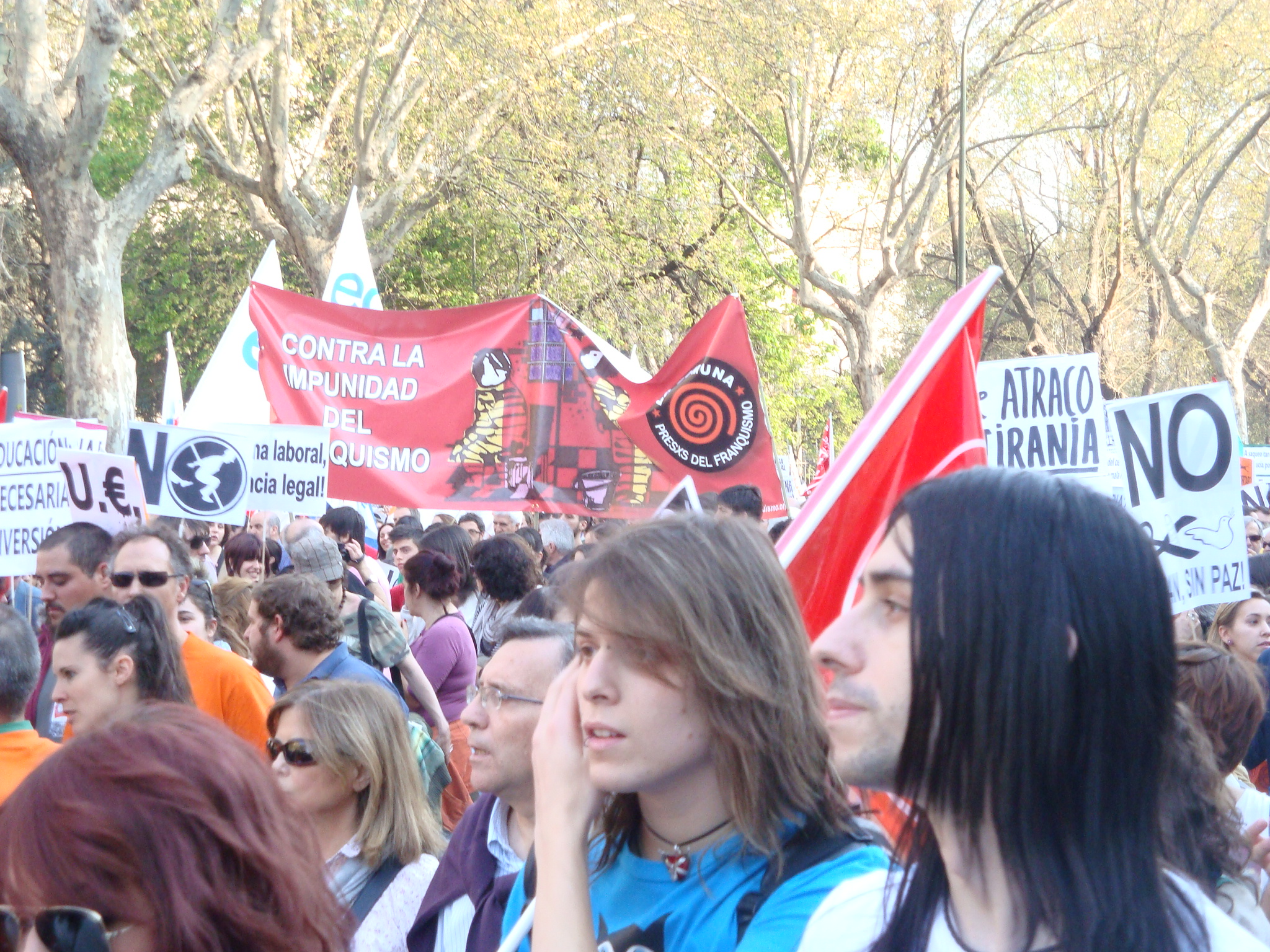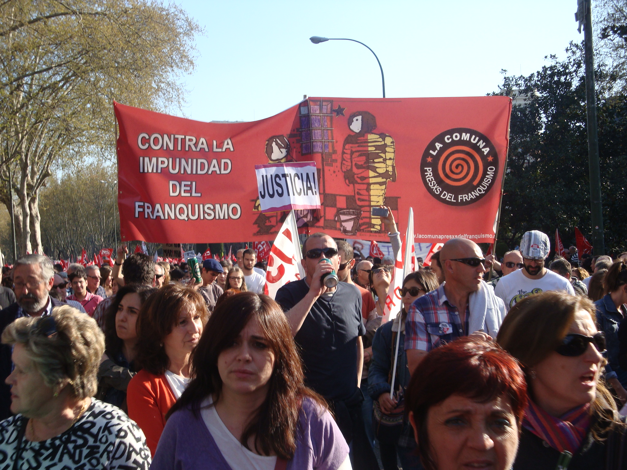 Lxs compañerxs de LA COMUNA – Presxs del franquismo en la manifestación del 29 de marzo, día de la huelga general  en respuesta a la reforma laboral y a la política reaccionaria del gobierno PP, lucían así de guapxs y combativxs.