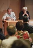 Blanco Chivite, a la izquierda, y Galante, ayer, en la Biblioteca «Jovellanos». juan plaza