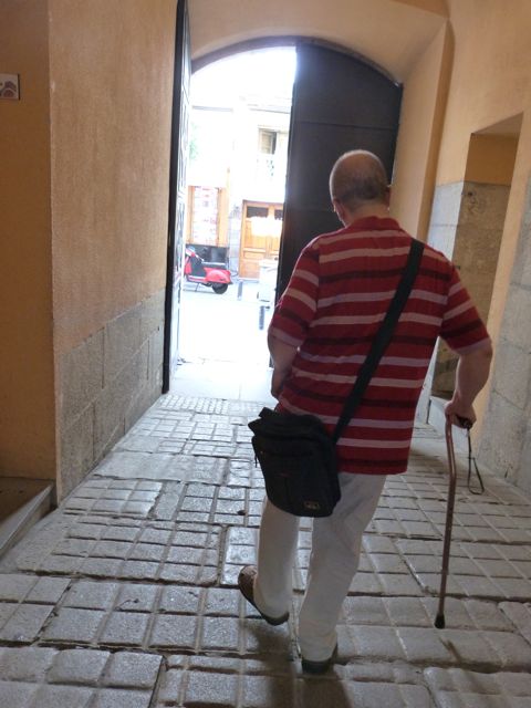Según nos aproximamos al portalón lateral nos encontramos con la presencia de un viejo guardia civil (terror de verde montura, que dijo el poeta) que hacía las labores de ¿vigilancia? en aquel lugar, sin tricornio ni naranjero y sí armado con una pretendida y amable sonrisa y saludando a diestro y siniestro. Al franquear aquella puerta y subir el pequeño talud alfombrado por las mismas piedras de antaño desembocamos en el patio de la antigua DGS.