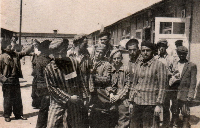 Francisco Ortiz estuvo a punto de morir poco antes de la rendición de los nazis debido a una paliza monumental. «Menos mal que no quedé inconsciente, porque me habrían llevado al crematorio». La solidaridad y los cuidados de sus compañeros le permitieron sobrevivir y en la foto de grupo tomada el día de la liberación aparece con una venda en el cuello, como secuela de la paliza.