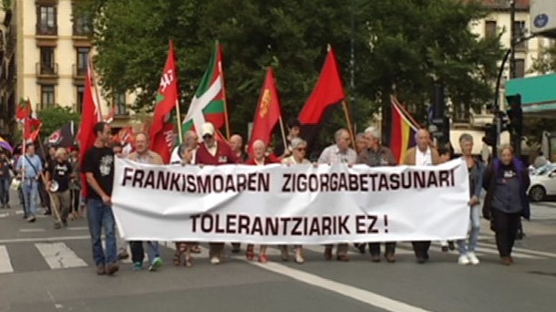 Una manifestación antifascista ha recorrido hoy las principales calles de San Sebastián para recordar a las víctimas de las tropas franquistas que entraron en la capital donostiarra el 13 de septiembre de 1936 y rechazar la «impunidad» de los crímenes cometidos durante la Guerra Civil y la dictadura.