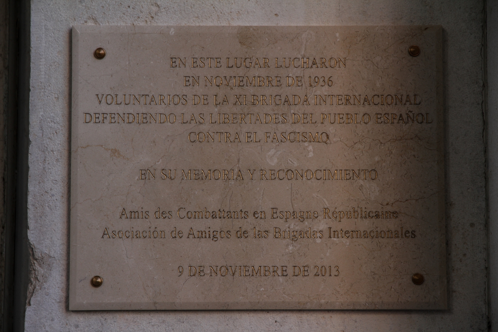 El sábado 9 de noviembre de 2013 en la Casa de Velázquez (Cuidad Universitaria), se celebró un homenaje a las Brigadas Internacionales que hace 77 años llegaron a Madrid para contribuir en su defensa. En este homenaje se inauguró una placa a la XI Brigada Internacional, con la presencia del Rector de la UCM, José Carrillo y el Embajador de Francia, también representantes de ACER (Les Amis des Combattants en Espagne Republicane) y AABI (Asociación de Amigos de las Brigadas Internacionales).