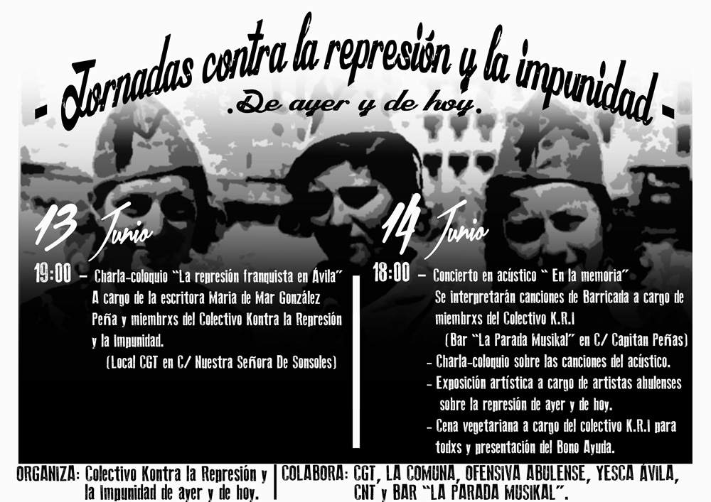 Colabora: CGT, LA COMUNA, OFENSIVA ABULENSE, YESCA ÁVILA , CNT y BAR «LA PARADA MUSIKAL».