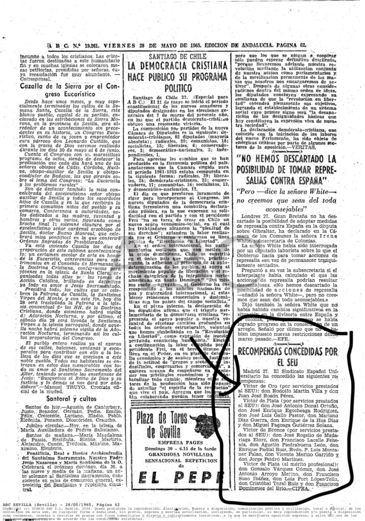 - 1965: Víctor de Oro del SEU (Sindicato Estudiantes Universitarios) concedida el 28 de mayo.