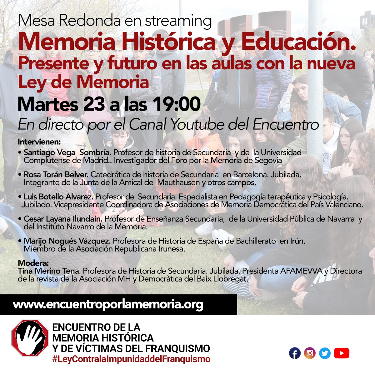 Mañana volvemos a analizar con las decenas de entidades amigas que formamos parte del «Encuentro de la Memoria» para desgranar el anteproyecto de Ley de Memoria que el PSOE nos hizo llegar en su momento.