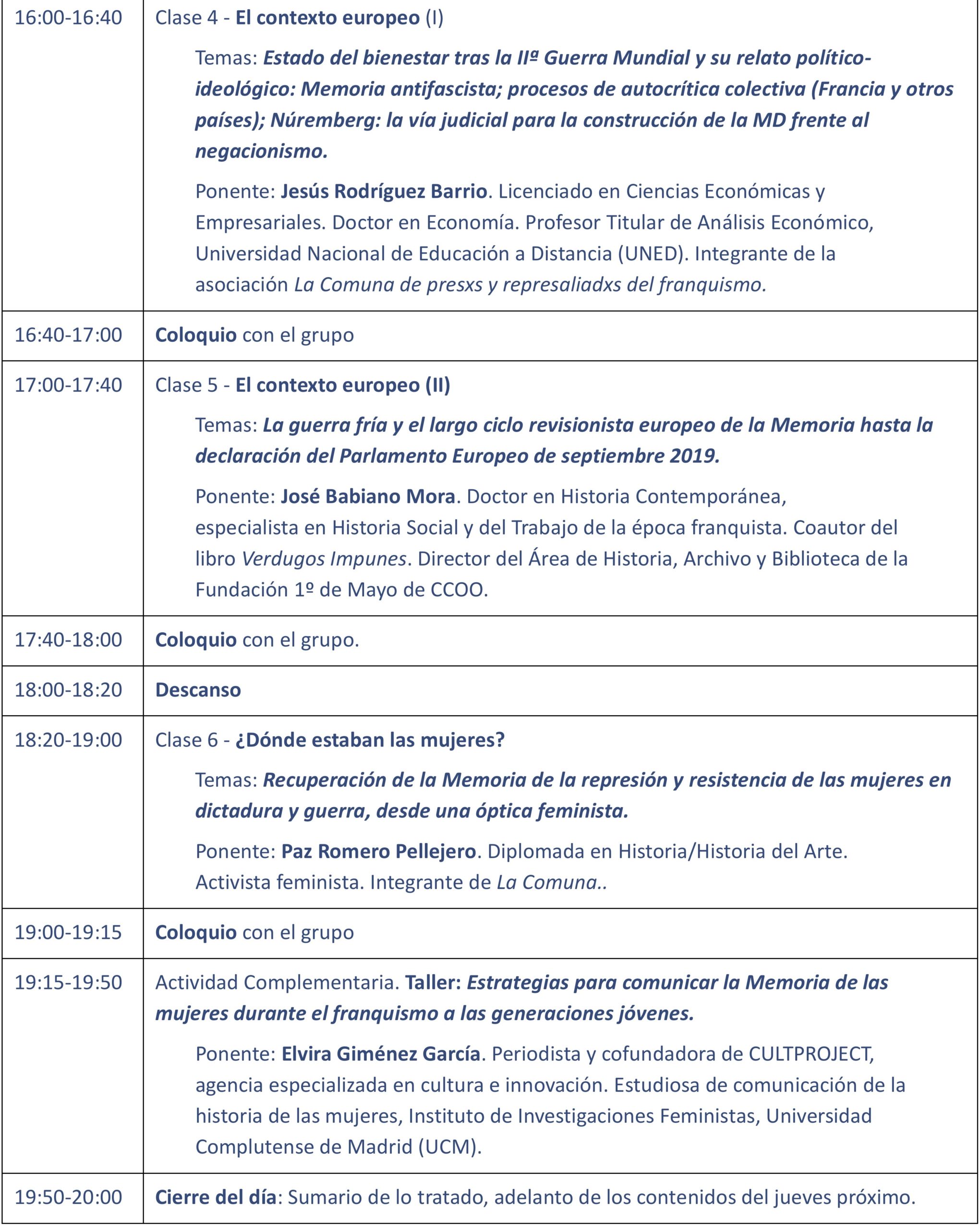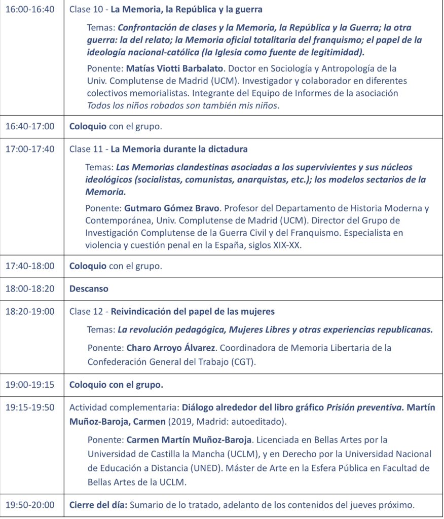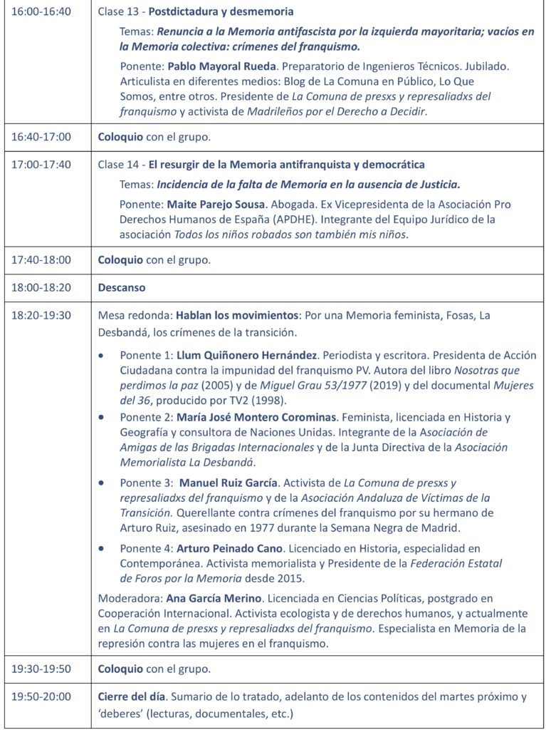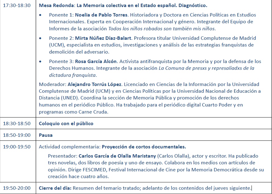 JUEVES 18 DE NOVIEMBRE: LA ASPIRACIÓN A LA MEMORIA HISTÓRICA Y DEMOCRÁTICA EN EL ESTADO ESPAÑOL II