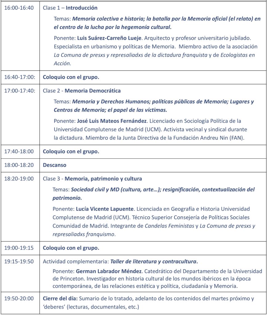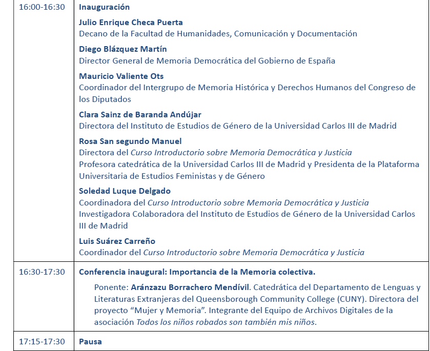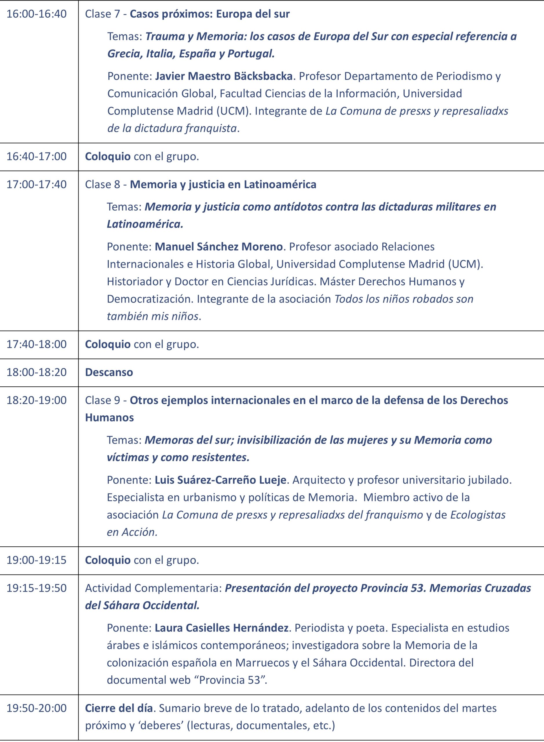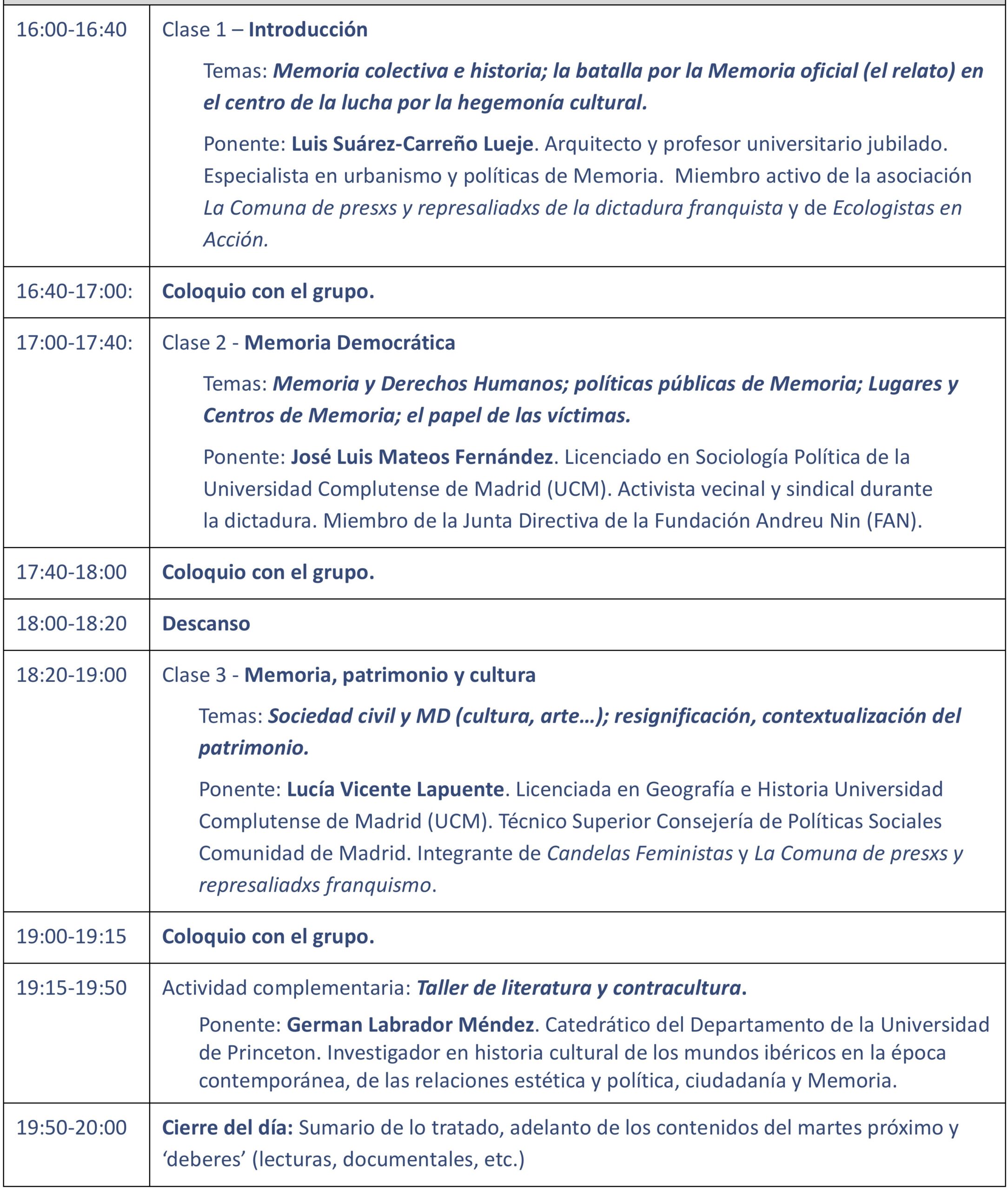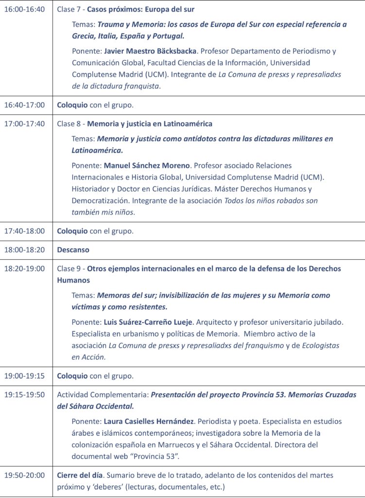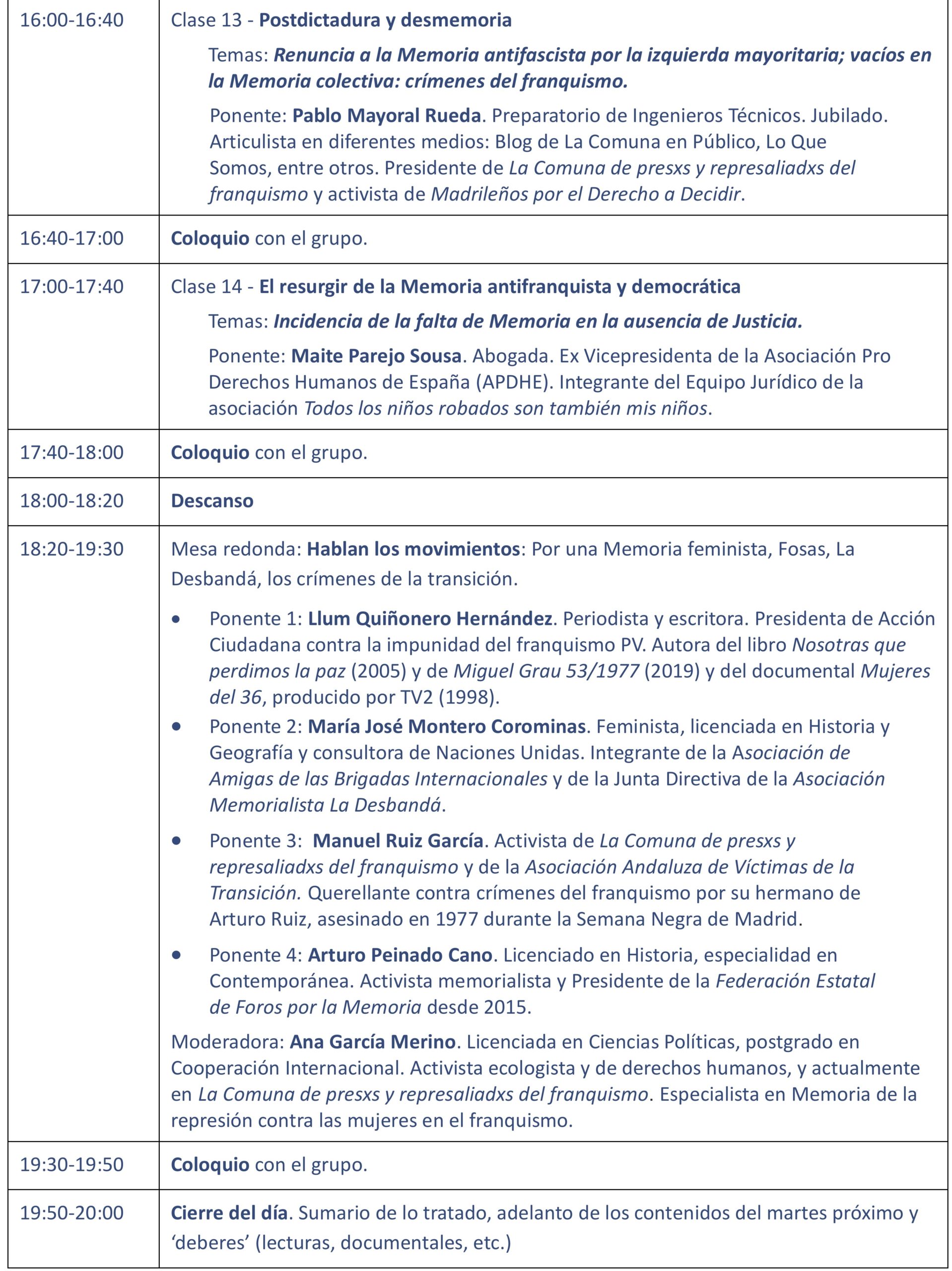 MARTES 16 DE NOVIEMBRE: LA ASPIRACIÓN A LA MEMORIA HISTÓRICA Y DEMOCRÁTICA EN EL ESTADO ESPAÑOL I