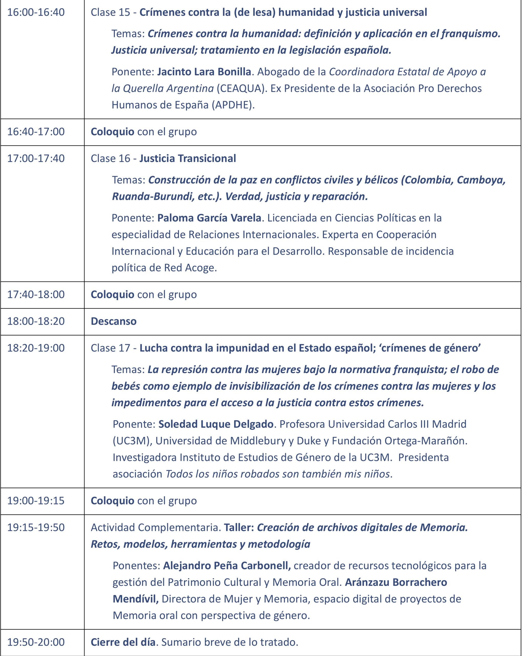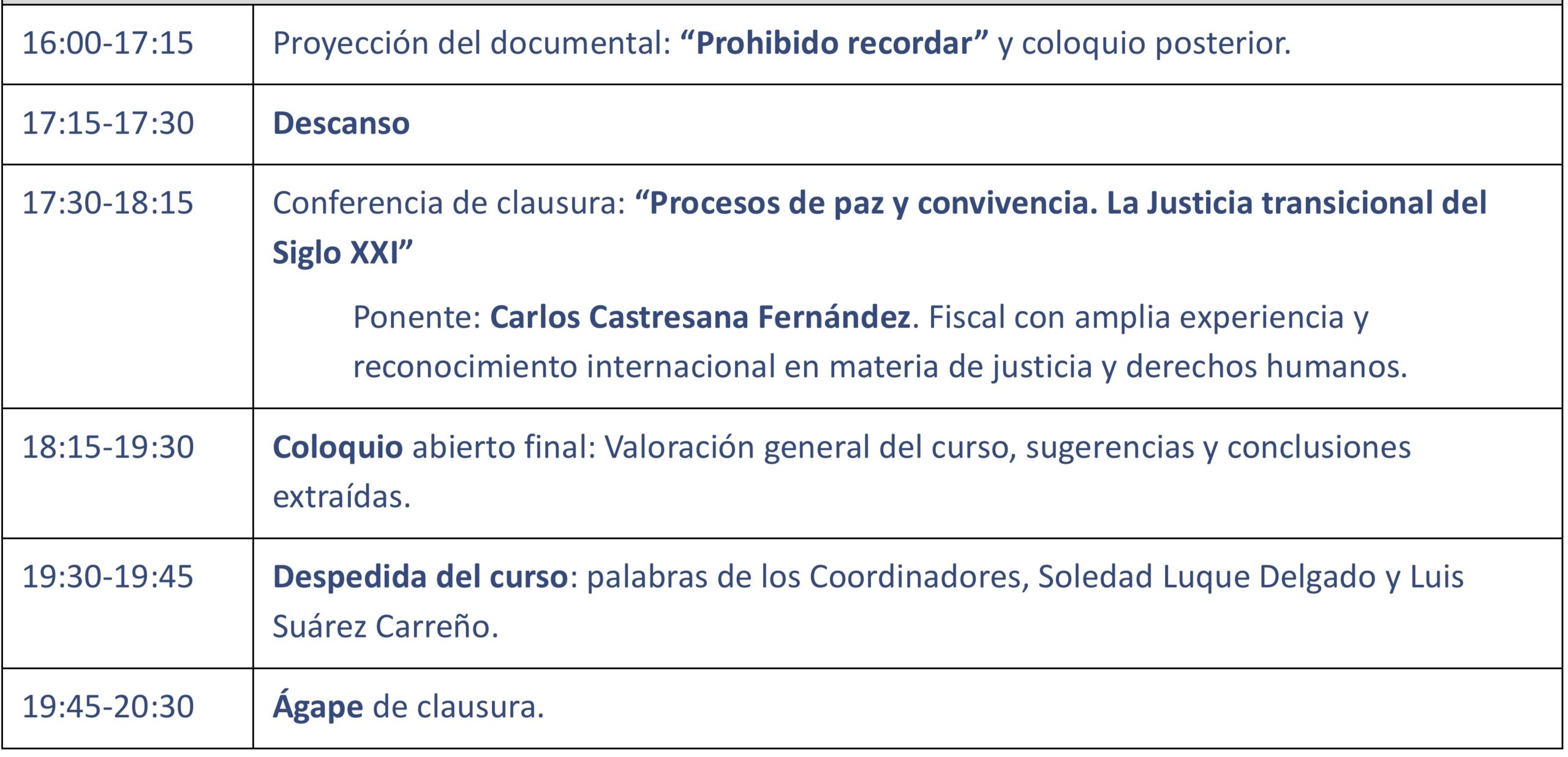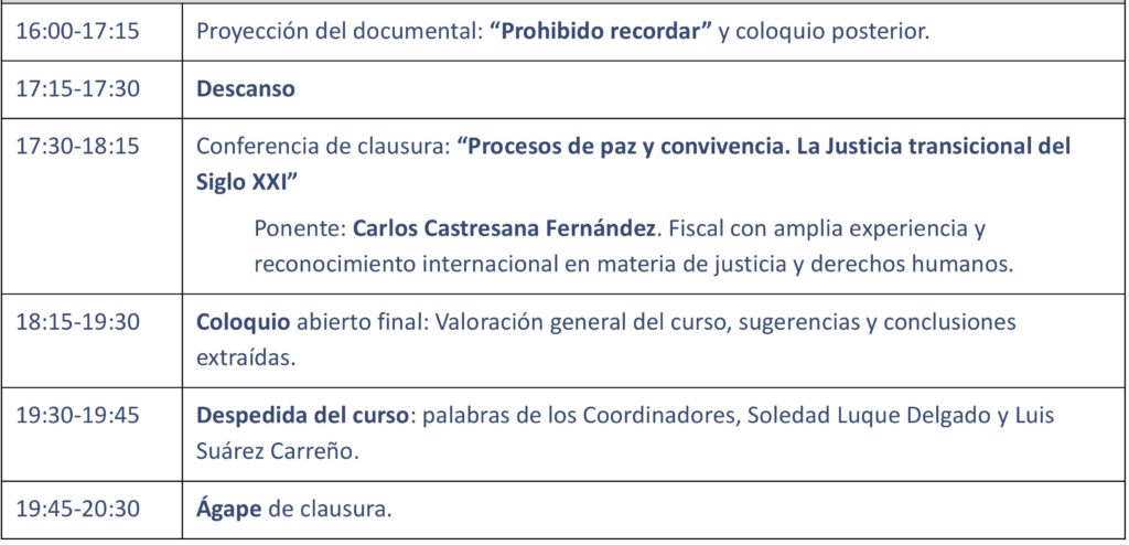 MARTES 23 DE NOVIEMBRE: JUSTICIA TRANSICIONAL; JUSTICIA UNIVERSAL Y LUCHA CONTRA LA IMPUNIDAD DEL FRANQUISMO