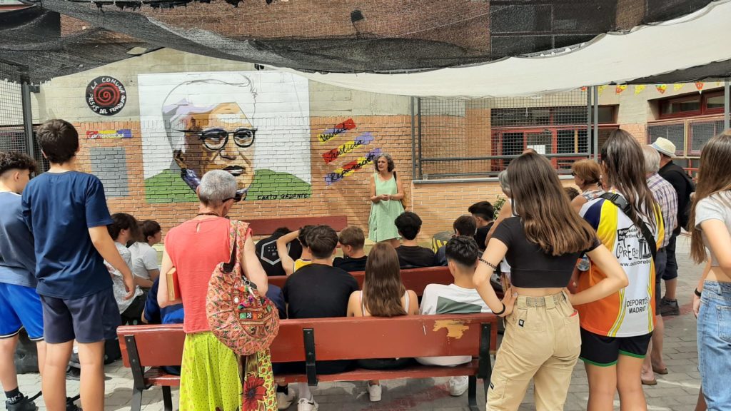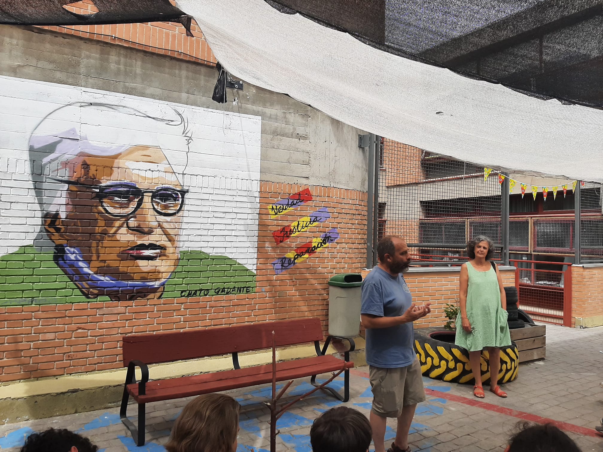 El miércoles, 15 de junio, las comuneras y los comuneros teníamos una cita en el colegio Lourdes de Madrid: íbamos a inaugurar el mural que hace dos años, el muralista G-rardo había realizado en homenaje a Chato Galante, que acababa de fallecer a causa de la pandemia. Precisamente por este motivo, no habíamos podido realizar como se merece ese acto.